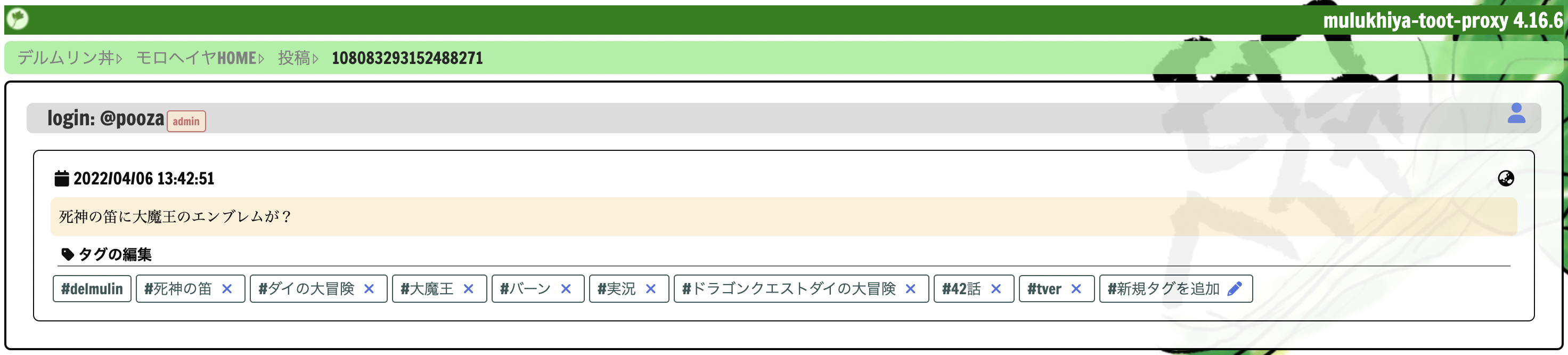 自分の投稿に対して、あとからハッシュタグの追加や削除を行うことが出来る様になりました。 Mastodon 3.5以降、投稿本文の編集が内部的に実装されましたが、これを利用した機能です。